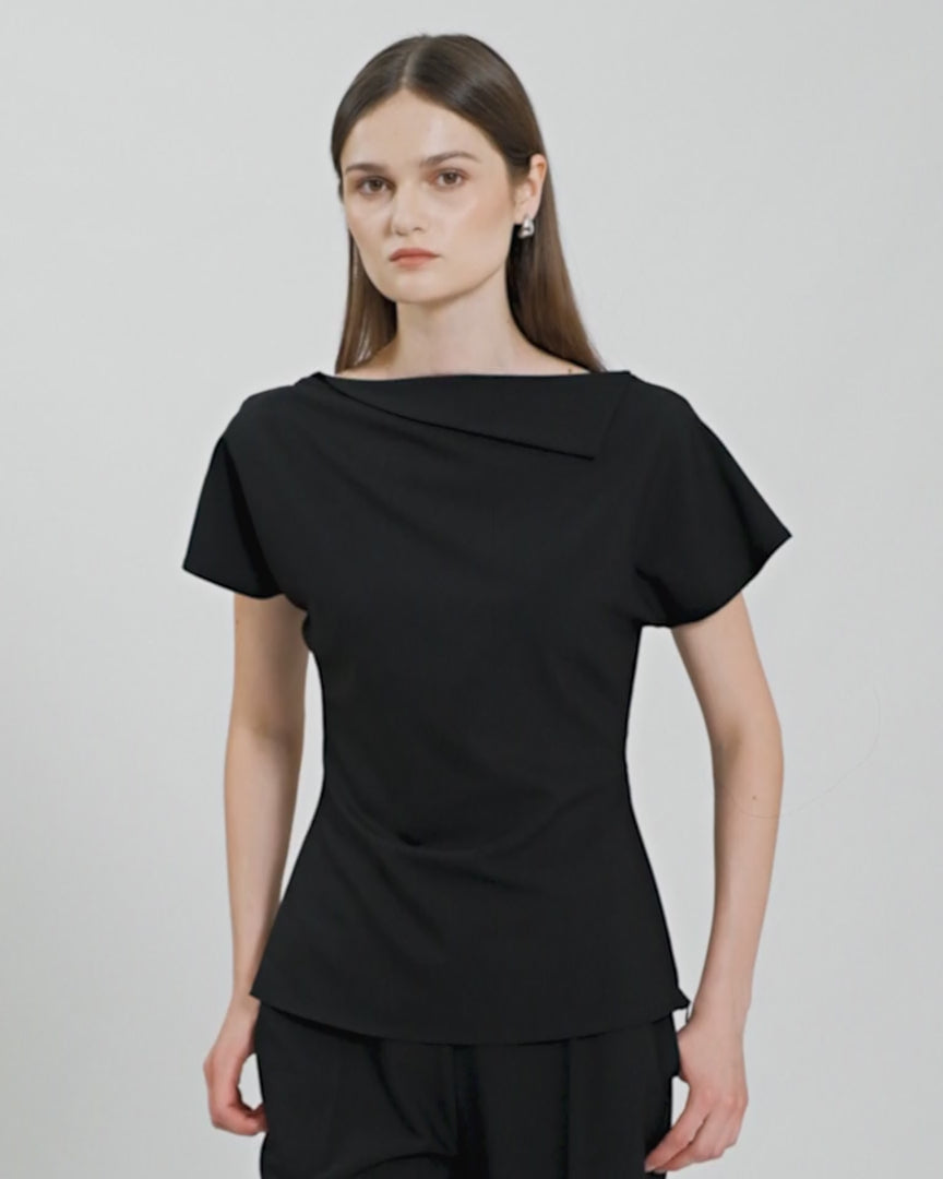 A timeless silhouette reimagined with a contemporary edge. Crafted from a smooth poly-blend fabric, this regular-fit blouse features dropped shoulders and relaxed sleeves, balanced by a front flap detail that adds a subtle, architectural touch.