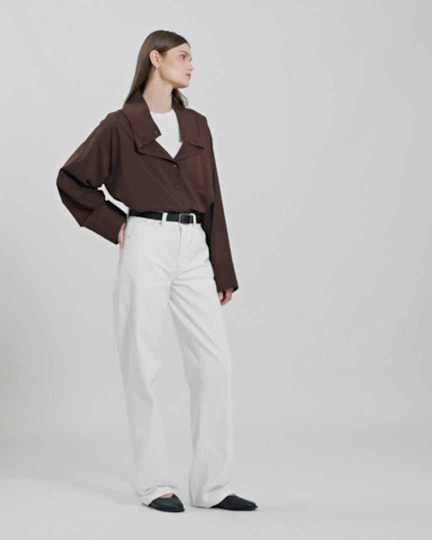 Introducing a modern take on the classic shirt silhouette, the Lincoln Shirt is defined by its high neckline and wide mandarin collar atop an oversized boxy fit. Designed with a front button opening, this versatile piece lends itself to effortless styling.